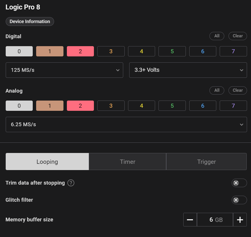 * Open the Saleae Logic software on your computer.