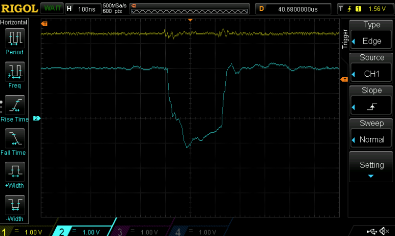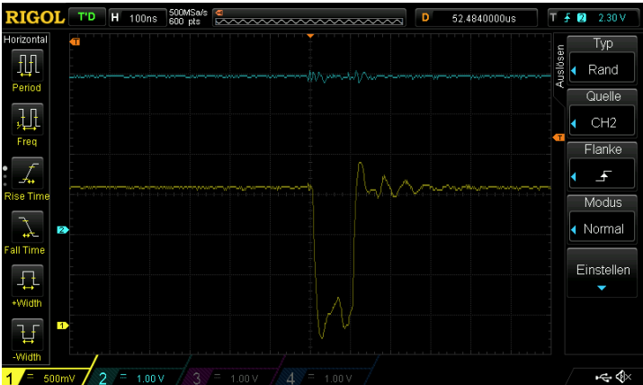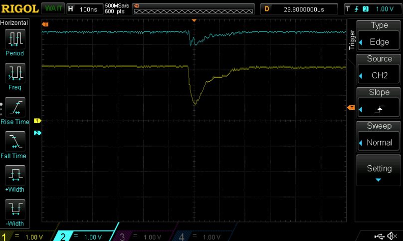 1. An optimal voltage glitch without a target connected can be seen in this figure, looks like this: