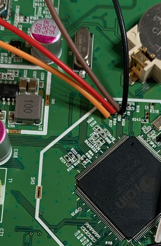 <figure><img src="https://812024329-files.gitbook.io/~/files/v0/b/gitbook-x-prod.appspot.com/o/spaces%2FS20l0nCBFmcT2JDBwjvL%2Fuploads%2Fgit-blob-e4396c259559e2f26e3afd3d9921bcc9808562da%2Fimage.png?alt=media" alt=""><figcaption><p>UART and JTAG pads found</p></figcaption></figure>